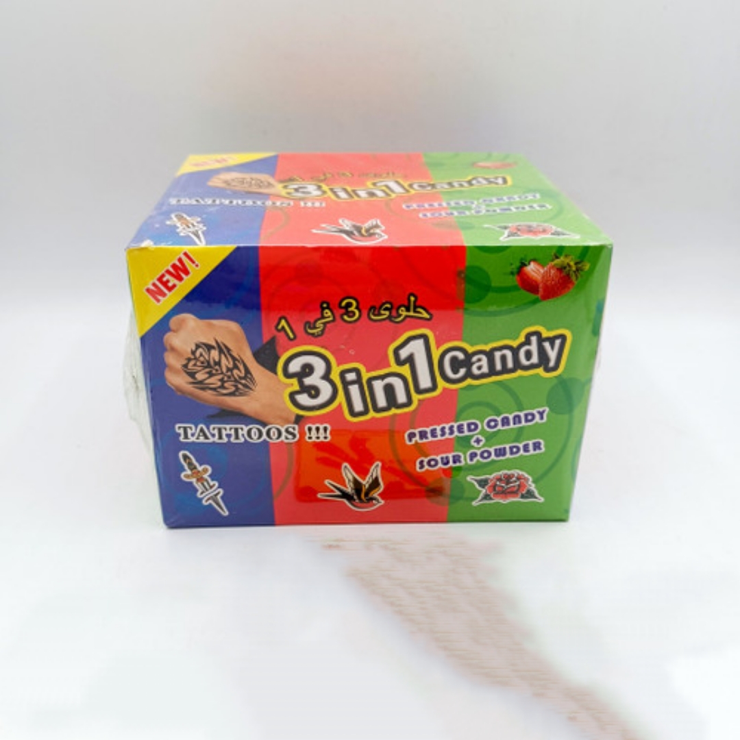 آبنبات توت فرنگی همراه پودر ترش و برچسب تتو 30 عددی