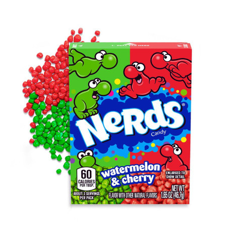 تاریخچه و فروش آبنبات ترش آمریکایی نردز با طعم گیلاس و هندوانه (46 گرم) Nerds