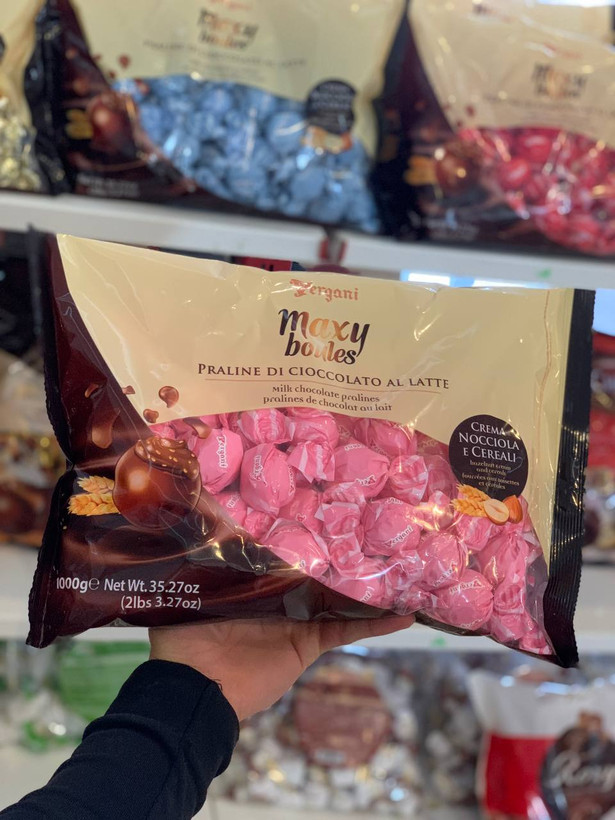 شکلات پذیرایی ورگانی صورتی با مغز کرم فندق ۱ کیلویی ـ VERGANI MAXY BLOUES 1 KG