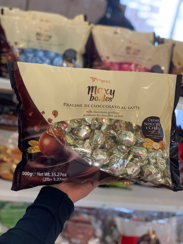 شکلات پذیرایی ایتالیایی ورگانی طلایی VERGANI Maxy Bloues پرالین با مغز کرم فندوق 1000 گرم