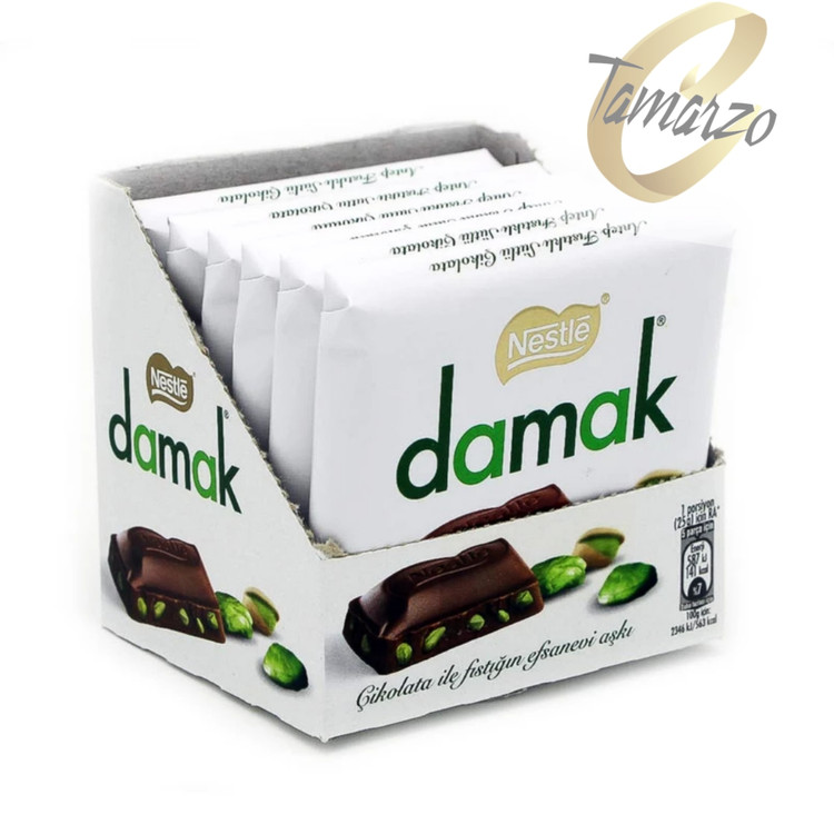 شکلات تلخ داماک با مغز پسته برند نستله - 63 گرم بسته 6 عددی