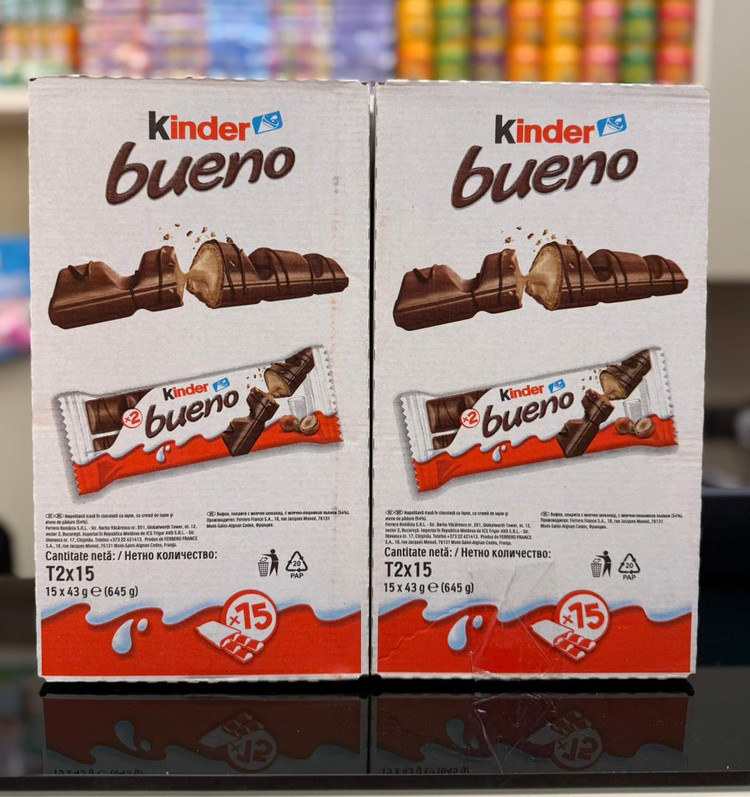 شکلات کیندر بوِینو (Kinder Bueno) یکی از محبوبترین و پرفروشترین محصولات شرکت فررو (Ferrero) ایتالیا است. این شکلات خوشطعم به دلیل ترکیب بینظیر ویفر ترد، مغز شیر و فندق کرمی و روکش شکلات شیری، سالهاست که در سراسر دنیا طرفداران بسیاری دارد. بسته 30 عددی آن انتخابی ایدهآل برای مهمانیها، استفاده در کافیشاپها، هدیه دادن یا حتی مصرف روزانه در خانه و محل کار است.