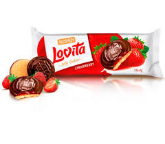 بیسکویت لاویتا با لایه ژله توت فرنگی و روکش شکلاتی