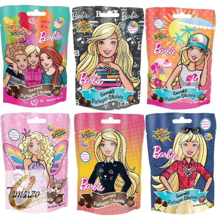 شکلات جرقه ای باربی barbie، یک شکلات مغزدار است که در داخل آن تکه هایی وجود دارد که به محض خیس شدن و گرفتن رطوبت دهان، شروع به ایجاد صدا کرده و مثل جرقه های یک فشفشه صدا می دهند. شکلات باربی barbie یک شکلات جرقه ای خارجی با طرح عروسک های باربی است. وزن هر کدام از این شکلات ها 50 گرم است.