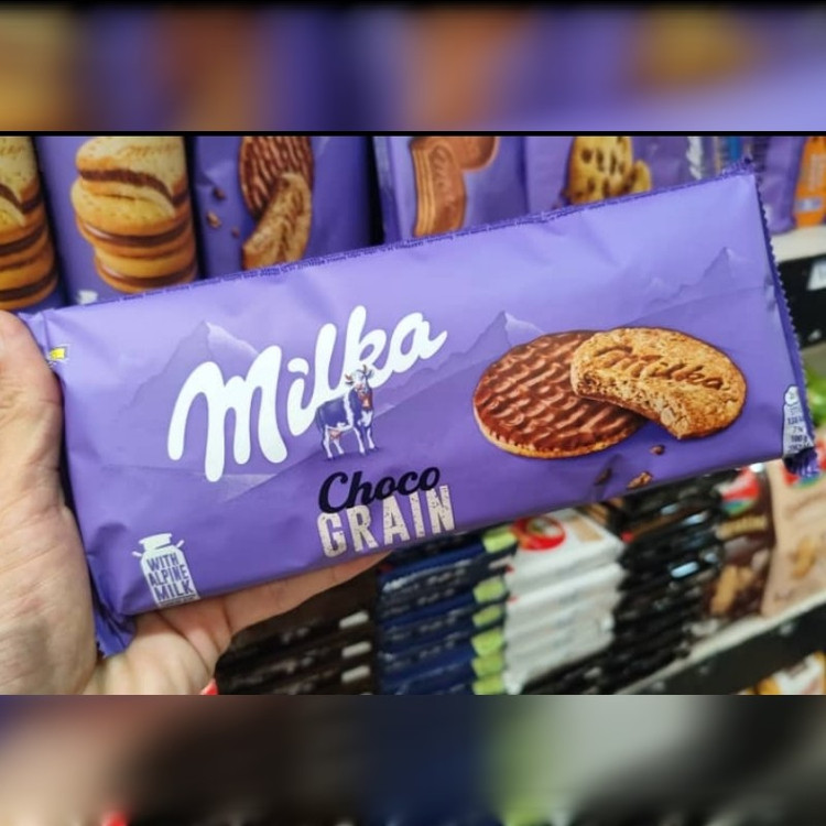 بیسکویت میلکا با روکش شکلاتی ۱۲۶ گرمی (Milka Choco Grain) یک میانوعده لذیذ و خوشمزه است که ترکیبی از بیسکویتهای ترد و شکلات شیری میلکا را ارائه میدهد. این محصول با استفاده از شیر کوههای آلپ تهیه شده و در بستهبندی ۱۲۶ گرمی عرضه میشود.